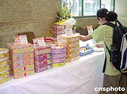 中秋節(jié)快到,作為傳統(tǒng)的應(yīng)節(jié)食品,各月餅生產(chǎn)商為迎合現(xiàn)今健康潮流,紛紛推出各式各樣的“健康月餅”。九月十一日,香港一家月餅廠家推出新品種讓市民免費(fèi)試食。作者:譚達(dá)明