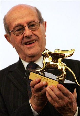 終身成就獎(jiǎng)得主德·奧利維拉展示“金獅”