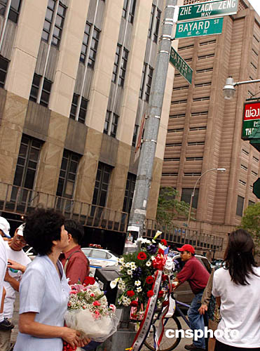 在距離世貿(mào)廢墟僅僅幾個街區(qū)的華埠,人們懷念著一位華裔“九一一”英雄曾喆。曾喆不在世貿(mào)大樓工作,他是在自發(fā)前往“九一一”現(xiàn)場救護他人時犧牲的。由于不能及時確認(rèn)遺骨,他的葬禮在“九一一”一周年時才舉行。三年過去了,人們沒有忘記他。今天,華埠的一條街道正式以曾喆的名字命名。這是“九一一”后紐約首個以亞裔“九一一”英雄名字命名的街道。