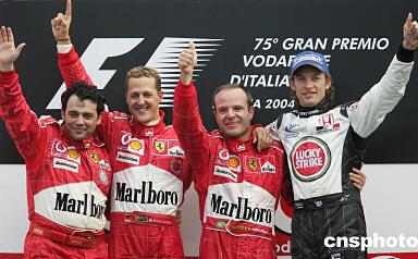 中新網(wǎng)9月13日電 在意大利蒙扎賽道,法拉利再次包攬F(tuán)1大獎賽意大利站的前兩名,已經(jīng)確保本賽季奪冠的舒馬赫甘居第二,配合巴里切羅登上了冠軍寶座。