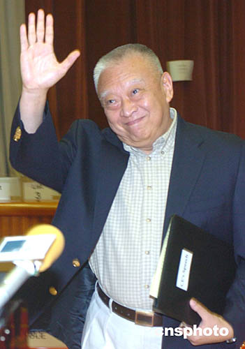 香港行政長官董建華12日夜晚到訪位于跑馬地黃泥涌道禮頓山社區(qū)會堂點票站開箱點票后﹐揮手向傳媒致意。