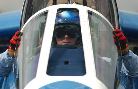 法國空軍的“法蘭西巡邏兵”飛行表演隊正式成立于1964年2月。飛行表演隊的飛機涂著同法國國旗一樣的紅、白、藍三種顏色,機群在空中做飛行表演時也常常把著三種顏色的煙跡留在空中。它象征著“自由”(紅色)、“民主”(白色)、“博愛”(藍色),體現(xiàn)了法國人民勇敢、浪漫的傳統(tǒng)和對未來美好的愿望。圖為駕駛員正在調(diào)整坐姿(來源:艦船知識網(wǎng)絡(luò)版)