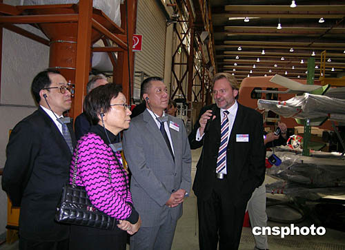 當(dāng)?shù)貢r(shí)間十三日下午﹐何厚鏵來(lái)到德國(guó)慕尼黑著名的西門子公司參觀訪問(wèn)﹐在生產(chǎn)機(jī)車的工廠﹐何厚鏵等人聽(tīng)取公司負(fù)責(zé)人介紹。作者:孫兆震