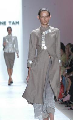 中新網(wǎng)9月15日電 據(jù)世界日報(bào)報(bào)道,曼哈頓13日舉行2005年春裝新展,知名華裔服裝設(shè)計(jì)師譚燕玉,采用中國云南“苗族”服飾因素,將鮮度極高的色彩與中性色調(diào)相搭襯,配上大膽的亮銀色,激起一股視覺震撼。