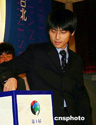首屆中環(huán)杯圍棋賽9月15日在臺北開幕,來自中國臺北、日本、韓國的十六名著名職業(yè)棋手參賽。圖為連續(xù)兩年獲日本“本因坊”的張栩九段在抽簽,他將在首輪對陣韓國女棋手樸志恩五段。中新社記者:黃少華