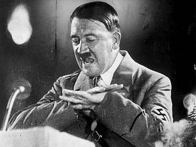 人們永遠(yuǎn)不會(huì)忘記黑白紀(jì)錄片中希特勒的狂人形象:希特勒像個(gè)幽靈一樣打著激烈的手勢(shì),發(fā)表富有煸動(dòng)性的演說,手臂伸向天空,面孔流滿汗水?墒,現(xiàn)在,一個(gè)全新的希特勒形象出現(xiàn)了。他出現(xiàn)在兩部彩色影片中,說話也不再扯著嗓子喊了,而是用柔和的語調(diào)說話。他參加晚會(huì),而晚會(huì)的燈光用的是樹枝形的裝飾燈,顯得輝煌而又有情調(diào)。他與朋友徒步穿過積雪未化的森林時(shí),見了可愛的男孩子們?nèi)滩蛔【湍笠幌滤麄兊男∧樀。希特勒不再是那個(gè)兇神惡煞的希特勒了,他居然還開玩笑說笑話。