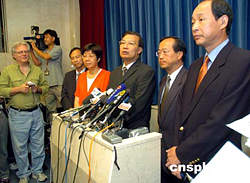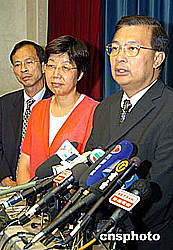 香港民建聯(lián)候任立法會議員譚耀宗、蔡素玉、陳鑒林、張學(xué)明等,9月15日應(yīng)邀與行政長官董建華會晤。作者:洪少葵