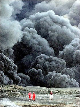 中新網9月16日電 據法新社報道,9月14日,在伊拉克北部小鎮(zhèn)拜伊吉附近,伊拉克警察和石油公司工作人員在一條正在燃燒的石油管道附近行走。