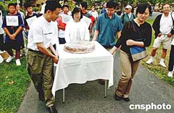 美西時(shí)間九月十八日,中國駐舊金山總領(lǐng)館的外交官們帶著大月餅到加州庫柏蒂諾市參加當(dāng)?shù)貎S社舉辦的第六屆中秋游園會(huì)。作者:陳鋼