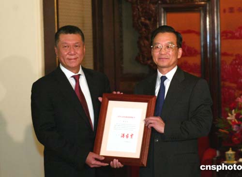 溫家寶向何厚鏵頒澳門特區(qū)第二任行政長官任命令