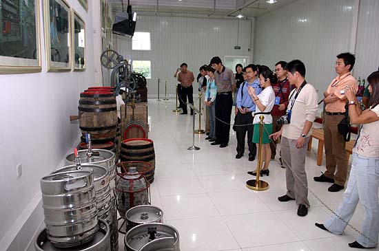 中新網(wǎng)青島9月19日電 今天,“中國網(wǎng)絡(luò)媒體山東行”采訪團(tuán)參觀了青島啤酒博物館,短短的一小時時間里,記者們通過耳聞目睹,領(lǐng)略了這個目前中國啤酒業(yè)巨頭的百年發(fā)展史。