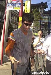 前來橫濱參加二00四國際田聯(lián)全明星大獎賽的劉翔,二十二日在抵達賽地之前來到橫濱中華街,為正在這里舉行的“揚帆青島,相約奧運”巡回展助陣,因為怕驚動游客而耽擱他接下來的賽前訓(xùn)練,戴著墨鏡的劉翔在中華街朝陽門的牌樓前匆匆而過。但依然有眼尖的僑胞認出,在一旁為其能在大獎賽中再有出色表現(xiàn)而默默祈愿。中新社記者:王健