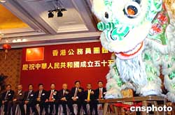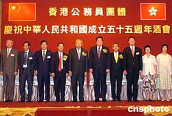 9月22日,香港公務(wù)員團(tuán)體在金域假日酒店舉行慶祝中華人民共和國(guó)成立五十五周年酒會(huì),香港特首董建華、公務(wù)員事務(wù)局局長(zhǎng)王永平等嘉賓出席典禮。