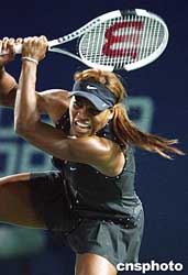 九月二十二日在北京舉行的首屆中國網(wǎng)球公開賽WTA巡回賽女單比賽中,美國名將小威廉姆斯苦戰(zhàn)三盤戰(zhàn)勝俄羅斯選手薩芬娜,成功晉級。作者:武仲林