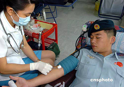 中新網(wǎng)9月24日電 解放軍駐港部隊(duì)四百官兵今天在駐軍醫(yī)院,參加由香港紅十字會(huì)組織的無(wú)償獻(xiàn)血活動(dòng)。他們每人獻(xiàn)出四百五十毫升血液。這是駐港部隊(duì)自一九九八年以來(lái),第七次參加無(wú)償獻(xiàn)血活動(dòng)。