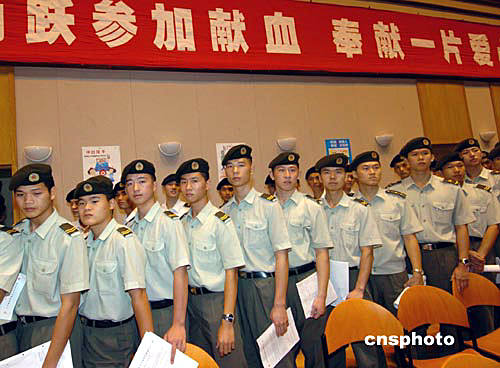 據(jù)香港中通社報(bào)道,今天上午,來(lái)自陸、海、空三軍的四百名官兵精神抖擻,以獻(xiàn)血這種方式,表達(dá)對(duì)香港市民的愛(ài)心。駐港部隊(duì)司令員王繼堂視察了獻(xiàn)血活動(dòng)。他說(shuō),駐港部隊(duì)官兵參加這一活動(dòng),是對(duì)香港市民、香港社會(huì)的貢獻(xiàn),用這種行動(dòng)贏得香港市民、香港社會(huì)的了解,也是展示駐港部隊(duì)“文明之師,威武之師”的機(jī)會(huì),有利于進(jìn)一步增進(jìn)駐軍與香港市民、香港社會(huì)的溝通,加深市民對(duì)駐軍的了解。