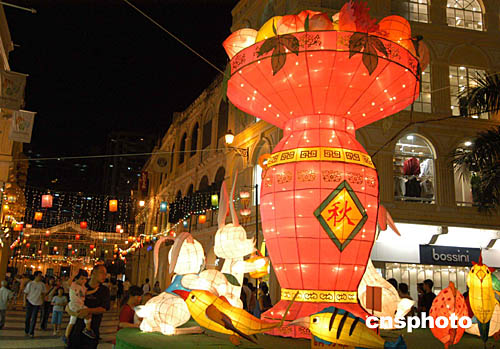 中秋將至,澳門街頭的賀節(jié)花燈,為中秋佳節(jié)增添歡樂的氣氛。作者:梁永強(qiáng)