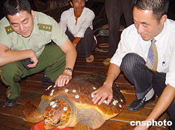這只雌性綠海龜體長1.1米,寬0.8米,重達83公斤,背面及腹面角板均有色澤的斑紋,表面呈橄欖色,并有多種貝殼化石附著點綴其間,煞是好看。據(jù)水產(chǎn)部門介紹,該海龜系國家二級重點保護水生野生動物,主要分布于中國臺灣、福建和海南等沿海一帶海域。作者:陳如冰