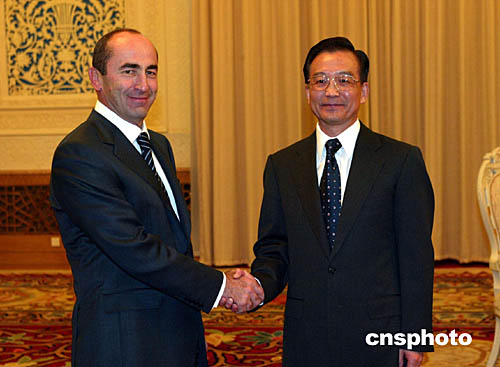 圖:溫家寶會見亞美尼亞共和國總統(tǒng)科恰良