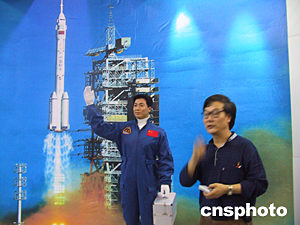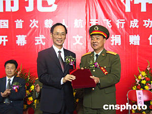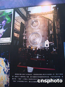 由中國(guó)人民解放軍總裝備部、文化部等共同主辦的“擁抱‘神舟’——紀(jì)念中國(guó)首次載人航天飛行成功一周年展覽”二十九日在國(guó)家博物館開(kāi)幕。展覽中傳遞的信息稱(chēng),根據(jù)計(jì)劃,“神舟”六號(hào)載人飛船將在明年發(fā)射升空,目前,中國(guó)航天人正信心百倍地投入“神舟”六號(hào)的研制工作中。中新社記者 孫自法 攝