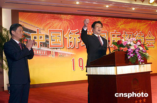 九月二十九日,中國僑聯(lián)在北京世紀(jì)金源飯店舉辦慶祝中華人民共和國成立五十五周年招待會,歡迎來京參加國慶活動的海內(nèi)外華僑華人。中新社記者:史利
