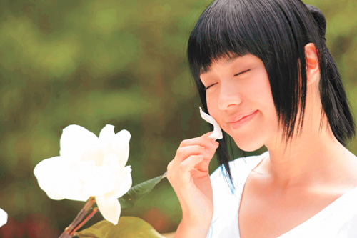 活潑開朗的Karena,雖然在拍攝期間經常被蚊子叮,但當看到軟綿綿的荷花玉蘭時,即情不自禁地愛上它。廣告中,Karena更將花瓣貼近臉龐以示花瓣的柔軟,而鏡頭后的Karena亦高興地不停聞摸花瓣,因為香港并未有出售這種罕有的美麗花種。