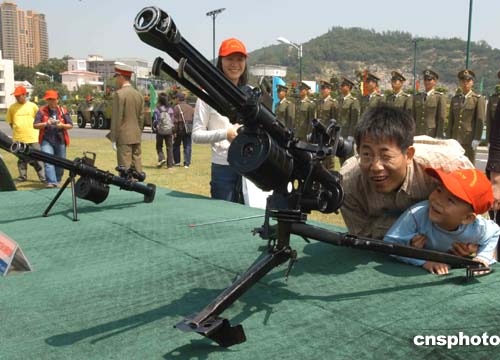 當(dāng)天有一千五百多名澳門市民參觀了軍營,他們對部隊的裝備興趣十足。作者:梁永強