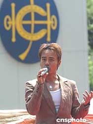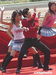 眾多香港歌星3日出席香港賽馬會在沙田賽馬場舉辦的慶祝中華人民共和國成立五十五周年國慶同歡嘉年華活動。作者:趙振清