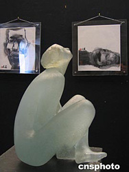 十月一日至十日,在巴黎最高的畫廊——距地面一百多米的拉迪芳斯新凱旋門畫廊舉辦了一個匯粹了中法兩國藝術(shù)家并集繪畫、雕塑、攝影于一體的大型展覽。來自浙江畫院的十八位畫家的八十余幅中國畫、來自浙江嘉興的二十五位攝影家拍攝的近百幅照片,同法國雕塑家的雕塑作品一道展出,東西方文化間的交流與對比表現(xiàn)得淋漓盡致。圖為中國畫家寫意中國畫前的法國雕塑家的人體雕塑作品,兩者風(fēng)格迥異,卻顧盼成趣。作者:鐘誠