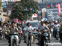 越南河內(nèi)街頭猶如潮水般的摩托車行走在大街小巷,令不少外來游客提心掉膽。越南被稱為“騎在摩托車上的民族”,越南民眾幾乎每家每戶都有一輛以上的摩托車。作者:吳慶才