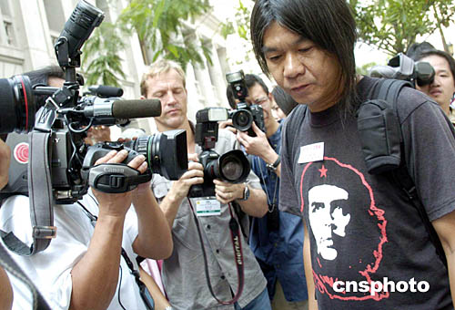 引人爭議、外號“長毛”的梁國雄,10月6日出席香港新一屆立法會首次會議宣誓就任立法會議員。他按照立法會誓辭宣誓前,大聲狂呼。立法會部分議員對梁國雄的宣誓方式表示遺憾,認為議員需要遵守議事規(guī)則。有輿論指“長毛”行為出位,實有作秀之嫌。圖為梁國雄在進入立法會大樓前受到大批傳媒及警方“關照”。作者:洪少葵