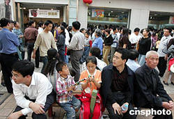 十月月七日是中國(guó)“國(guó)慶七天長(zhǎng)假”的最后一天,北京王府井商業(yè)街人山人海,各家店鋪人滿為患。據(jù)有關(guān)部門統(tǒng)計(jì),雖然今年“黃金周”北京市的商業(yè)銷售額略低于往年,但還是令商家滿意。中新社記者:任晨鳴