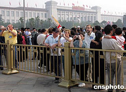 圖:天安門廣場孫中山像前排隊(duì)拍照