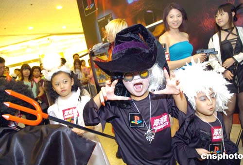 西方“萬圣節(jié)”即將到來,香港海港城聯同PlayStation 2將商場裝飾成猛鬼基地,提供多項刺激驚嚇游戲,讓市民投入熱鬧的西洋佳節(jié)。