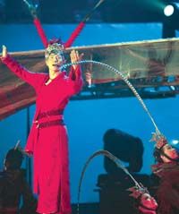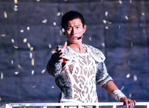 中新網(wǎng)10月10日電 據(jù)京華時報報道,昨晚,劉德華2004世界巡回演唱會北京站演出在歌迷的尖叫聲中開場。演唱會歌舞并進,穿插著港臺、傳統(tǒng)京劇、百老匯等幾種風(fēng)格,使得整場演出更像大舞臺劇,F(xiàn)場,劉德華臺上換衣、袒胸露點、大膽挑逗女伴舞,不時對歌迷說一些貼心的話,將現(xiàn)場氣氛煽動得極為熱烈。