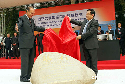 素有“中國情結(jié)”的法國總統(tǒng)希拉克今天一到上海就來到著名高等學府同濟大學,向全中國青年滿懷感情地表達來自法國的友誼與共同接受新世紀挑戰(zhàn)的美好愿望,并接受了中國學子寓意中法友誼長存的禮物。
