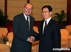 圖:上海市長(zhǎng)韓正會(huì)見法國(guó)總統(tǒng)希拉克