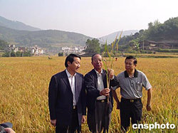 中新社尤溪十月十一日電 (陳國(guó)明黃獻(xiàn)光)由福建省農(nóng)科院院長(zhǎng)謝華安主持的中國(guó)航天超級(jí)稻“Ⅱ優(yōu)航一號(hào)”再生稻十一日在福建尤溪縣通過了國(guó)家專家組的驗(yàn)收,百畝連片再生稻畝產(chǎn)達(dá)五百二十一點(diǎn)四公斤,加上頭季畝產(chǎn)九百二十八點(diǎn)三公斤,全年平均畝產(chǎn)達(dá)一千四百四十九點(diǎn)三公斤,再次刷新世界紀(jì)錄。