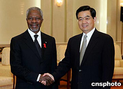 安南感謝胡錦濤主席的會(huì)見(jiàn),表示贊同胡主席對(duì)國(guó)際形勢(shì)的分析和看法,感謝中國(guó)政府長(zhǎng)期以來(lái)對(duì)聯(lián)合國(guó)和他本人工作的支持。安南說(shuō),中國(guó)在國(guó)際事務(wù)中的作用和影響正日益上升,是維護(hù)世界和平與發(fā)展的重要力量。在實(shí)現(xiàn)聯(lián)合國(guó)提出的千年發(fā)展目標(biāo)方面,中國(guó)政府取得了積極的成果。聯(lián)合國(guó)改革的目的是使聯(lián)合國(guó)更好地應(yīng)對(duì)各類(lèi)威脅與挑戰(zhàn),需要包括中國(guó)在內(nèi)的廣大會(huì)員國(guó)繼續(xù)給予大力支持。