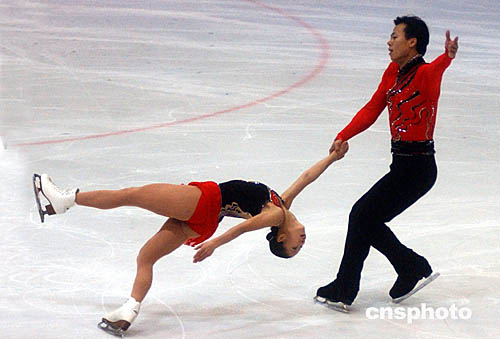 十月十三日,中國花樣滑冰隊在北京首都體育館進行隊內(nèi)測試,備戰(zhàn)即將舉行的世界花樣滑冰大獎賽美國站比賽。圖為中國花樣滑名將申雪、趙宏博演繹自由滑新編曲目《宋氏王朝》。中新社記者:武仲林