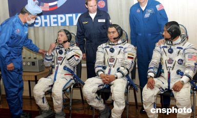 本次“聯(lián)盟TMA-5”號飛船共載3名乘客,一位是華裔指揮員焦立中(Leroy Chiao),一位是隨機(jī)工程師沙利讓-沙里波夫,還有一位國際空間站觀光客尤里·沙爾金(他將在空間站上觀光一周并同目前在國際空間站上工作的第九批隊員一起返回地面)。