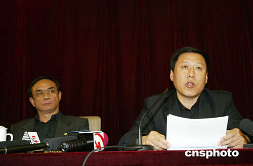 十月十四日晚,自北京現(xiàn)代隊在與沈陽金德隊比賽中不滿裁判點球判罰罷賽十二天后,中超委員會秘書長郎效農(nóng)、中國足協(xié)裁判委員會秘書長李東升和中國足協(xié)紀律委員會副主任馬成在北京向媒體公布中國足協(xié)處罰決定:當場比賽執(zhí)法裁判周偉新在第八十分鐘的點球判罰為誤判,停止周偉新余下中超比賽的裁判工作,對北京現(xiàn)代的處罰為罰款三十萬元人民幣,與沈陽金德的比賽為零比三負,扣除北京現(xiàn)代中超積分三分,停止北京俱樂部總經(jīng)理、球隊教練組組長楊祖武隨隊工作半年,即從二零零四年十月十四日至二零零五年四月十三日。中新社記者:盛佳鵬