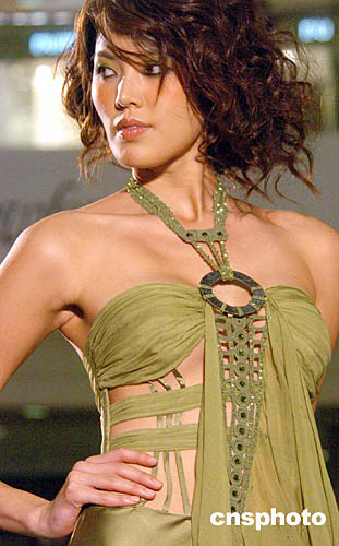 圖為模特展示設(shè)計師時裝新款。