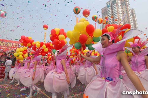 中國(江門)僑鄉(xiāng)華人嘉年華暨二零零四中國(江門)僑鄉(xiāng)旅游節(jié),十月十七日在廣東江門市隆重舉行,來自海內(nèi)外和五邑各市、區(qū)共四十二支表演隊和方陣組成的二千多人的龐大表演隊伍在大街上進(jìn)行了浩浩蕩蕩大巡游。作者:羅仰明