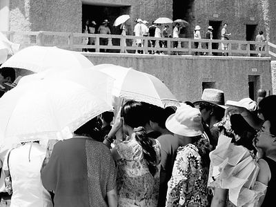 近年來(lái),莫高窟面臨的旅游壓力空前巨大。從1979年正式向游人開(kāi)放時(shí)起,每年來(lái)敦煌石窟旅游的人數(shù)迅速上升,今年估計(jì)將突破40萬(wàn)人次。今年國(guó)慶“黃金周”期間,各地涌到敦煌、進(jìn)莫高窟參觀的游客總數(shù)即超過(guò)2萬(wàn)人次。許多開(kāi)放洞窟和狹窄棧道,都是人滿為患。超量游客進(jìn)入洞窟,使洞窟長(zhǎng)期陷于“環(huán)境疲勞”狀態(tài),導(dǎo)致體質(zhì)逐漸惡化,并直接助長(zhǎng)崖體及壁畫(huà)底仗中的氯化鈉聚積,催化莫高窟壁畫(huà)、塑像的已有病害。更有一些旅游者,還千方百計(jì)要觸摸這些古老珍寶。據(jù)統(tǒng)計(jì),暗中“動(dòng)手”者的比例高達(dá)3.9%。種種情況,構(gòu)成了對(duì)莫高窟文物的極大危害。