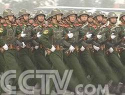團(tuán)體操剛剛演練完,他們馬上打散隊(duì)形,用倒功組成了“55、盾牌和長(zhǎng)城”圖案,向國(guó)慶55周年和公安部建部55周年獻(xiàn)禮致敬。