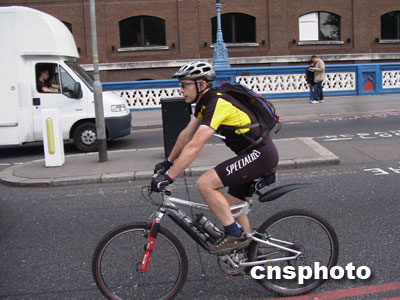 倫敦狹窄的馬路常常并不劃出專門的自行車道,即使有,只是用白線隔出的一條僅容一輛自行車騎行的細徑。也許是得益于這里良好的交通秩序和公眾的交通意識,人們騎車的速度一般都很快,堪稱“飆車”,雖然沒見到誰出現(xiàn)閃失,但其速度也令記者們暗暗捏一把汗。
