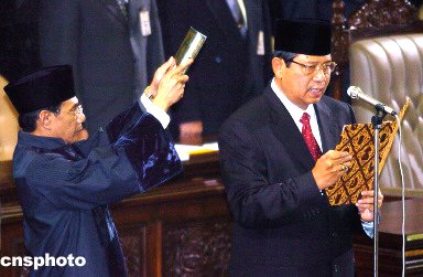 蘇西洛被譽為“思想將軍”和軍中開明派,曾擔任印尼內閣政治安全統(tǒng)籌部長。在九月份舉行的印尼總統(tǒng)直選中,他以百分之六十一的得票率擊敗前總統(tǒng)梅加瓦蒂。