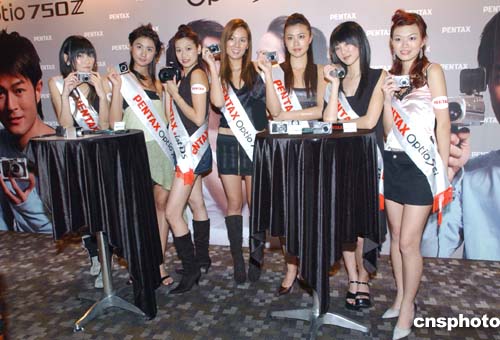 七位賓得數(shù)碼女郎向媒體展示七款嶄新型號的數(shù)碼相機(jī)。作者:鄧慶樂