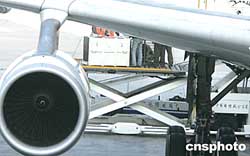 10月22日下午十七時,從四川臥龍交換到北京動物園的三只大熊貓中的兩只“大地”、“古古”(右),乘坐中國國航班機平安抵達北京機場。作者:任晨鳴